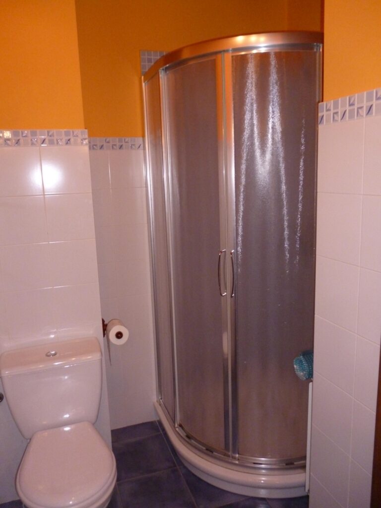 Baño privado con ducha y artículos de aseo gratis.